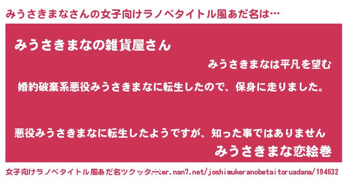 | 胡散臭い通販商品みたいなあだ名 | 『幸せが訪れる高級そうな絵画…その名も「みうさきまな」』 |
