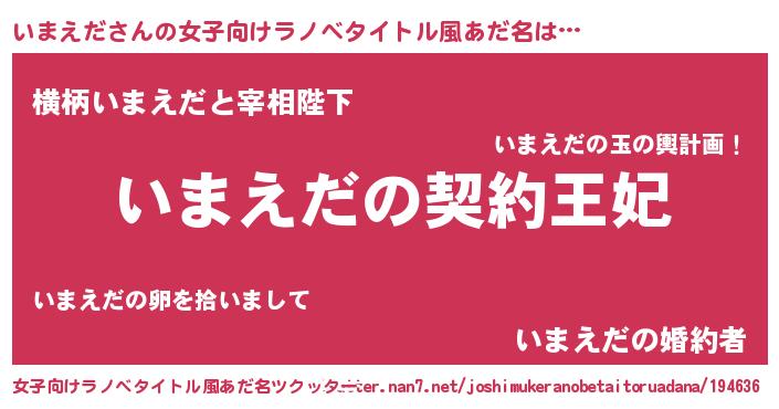 | 男性向けラノベタイトル風あだ名 | 『誰もが恐れるあのいまえだが、ぼくの専属メイドになるようです。』 |