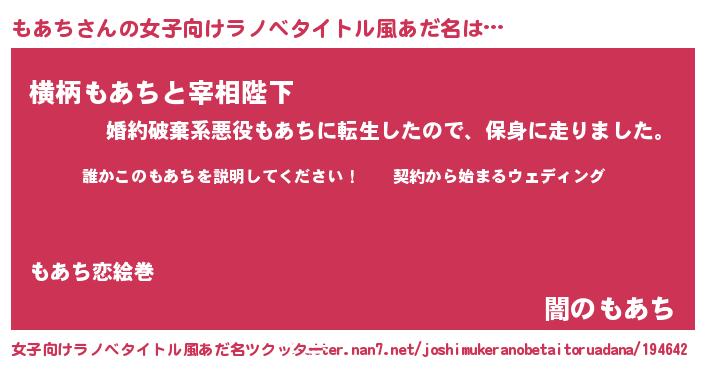 | 男性向けラノベタイトル風あだ名 | 『モアチアートオンライン』 |