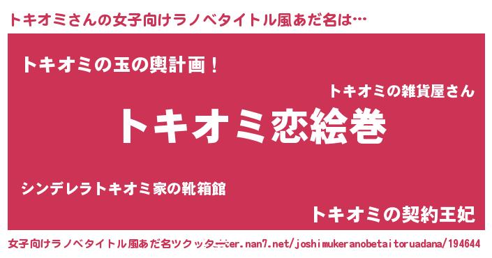 | 男性向けラノベタイトル風あだ名 | 『おまえをオタクにしてやるから、俺をトキオミにしてくれ! 』 |