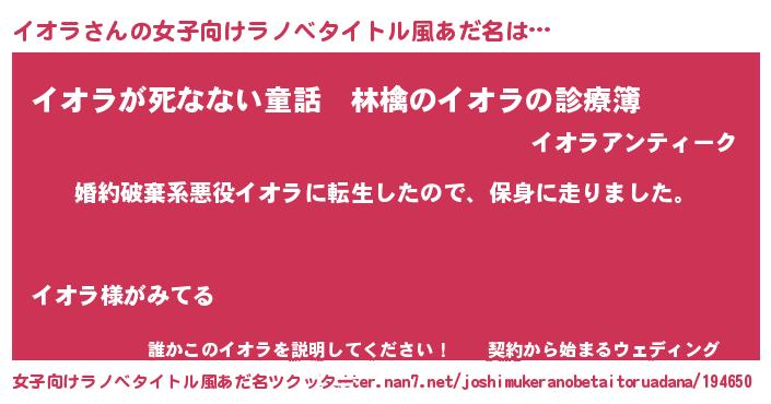 | 男性向けラノベタイトル風あだ名 | 『イオラスレイヤー』『魔弾の王とイオラ』 |