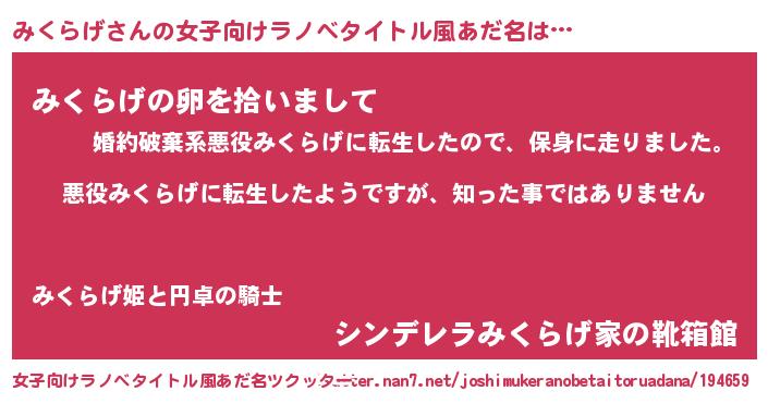 | 男性向けラノベタイトル風あだ名 | 『この素晴らしい世界にみくらげを!』 |