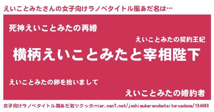 | 男性向けラノベタイトル風あだ名 | 『えいことみたに滅ぼされるだけの簡単なお仕事です』 |