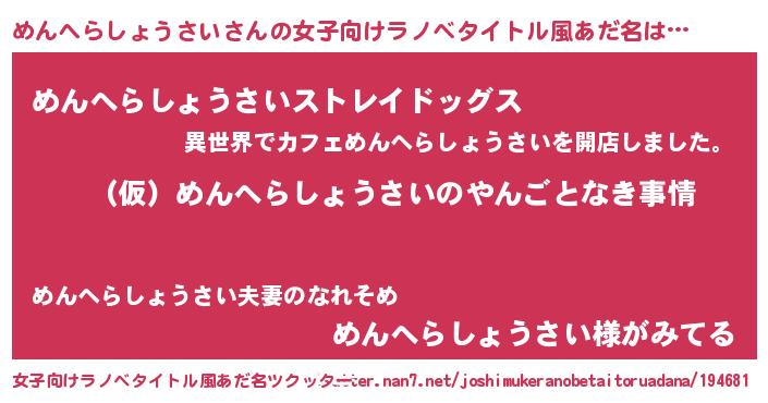 | 胡散臭い通販商品みたいなあだ名 | 『必ず成功する水晶球…その名も「めんへらしょうさい」』 |