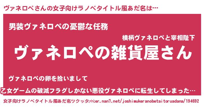| 男性向けラノベタイトル風あだ名 | 『やはりヴァネロペの青春ラブコメはまちがっている 』 |