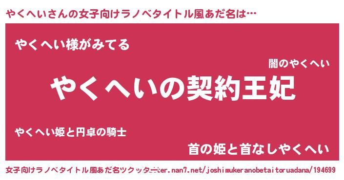 | 意味不明あだ名 | 『永久保存やくへい』『自称やくへい』 |
