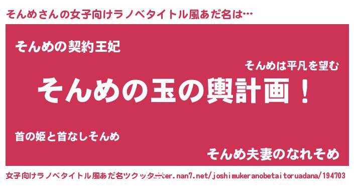 | 胡散臭い通販商品みたいなあだ名 | 『来世でも幸せになれる健康食品…その名も「そんめ」』 |