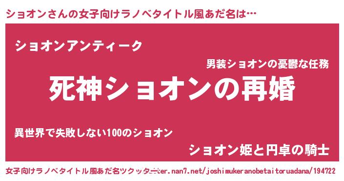 | 男性向けラノベタイトル風あだ名 | 『ノーゲーム・ノーショオン』 |