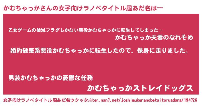 | 男性向けラノベタイトル風あだ名 | 『カムチャッカスレイヤー』 |
