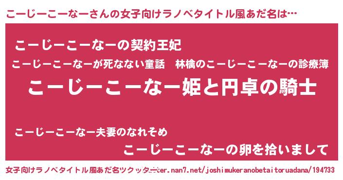 | 胡散臭い通販商品みたいなあだ名 | 『モテモテ間違いなし霊験あらたかなお札…その名も「こーじーこーなー」』 |