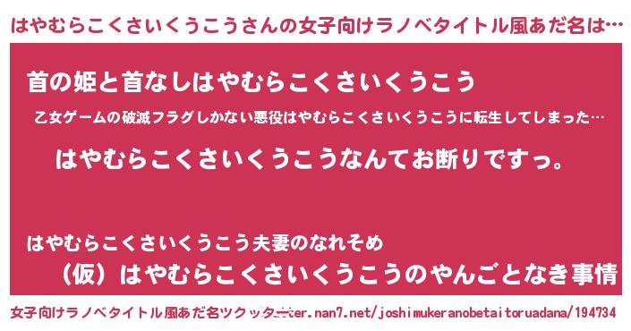 | 意味不明あだ名 | 『自称はやむらこくさいくうこう』 |