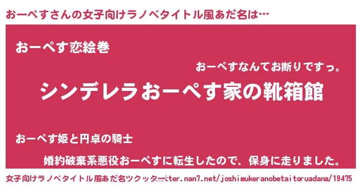 | 肩書あだ名 | 『おーぺす船長』『おーぺす教授』 |
