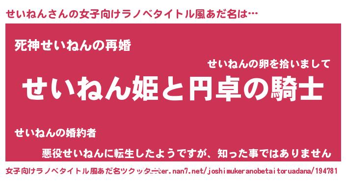 | 男性向けラノベタイトル風あだ名 | 『セイネンアートオンライン』 |