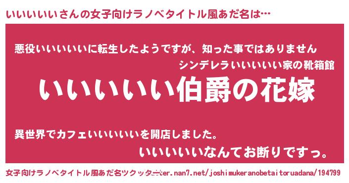 | 男性向けラノベタイトル風あだ名 | 『やはりいいいいいの青春ラブコメはまちがっている 』 |