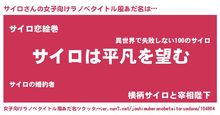| ヒーロー風カッコイイあだ名 | 『暗黒騎士サイ』『愛の使者サイロ』 |