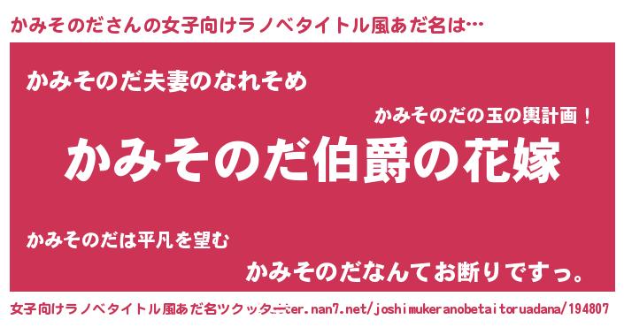| 胡散臭い通販商品みたいなあだ名 | 『世界が平和になる高級そうな壺…その名も「かみそのだ」』 |