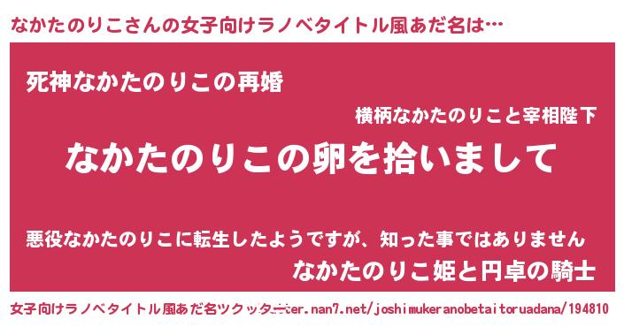 男性向けラノベタイトル風あだ名 | 『ダンジョンになかたのりこを求めるのは間違っているだろうか』 |