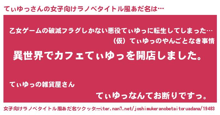 | 市区町村名 | 『てぃ覇市』『京てぃ市』『横てぃ市』 |
