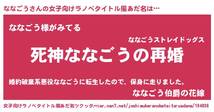| ヒーロー風カッコイイあだ名 | 『慈愛の使者ななごう』『幻影騎士ナナ』 |