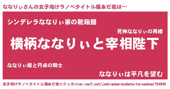| 男性向けラノベタイトル風あだ名 | 『ななりぃに滅ぼされるだけの簡単なお仕事です』 |