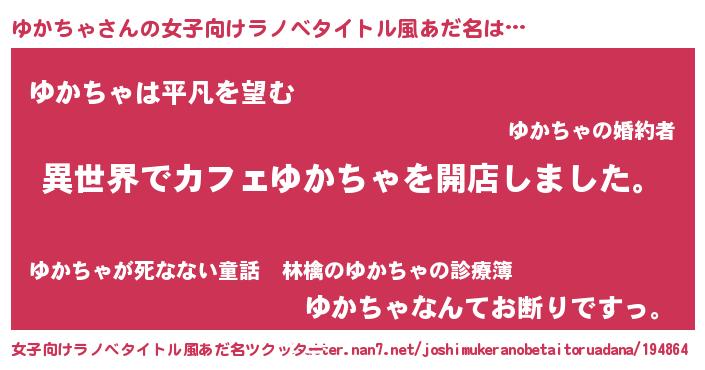 | ヒーロー風カッコイイあだ名 | 『ネオユカチャ』『暗黒騎士ユカ』 |