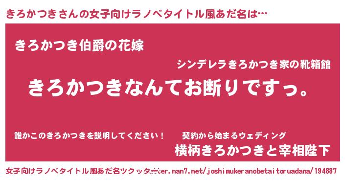| 意味不明あだ名 | 『自称きろかつき』『ペロリンきろかつき』 |