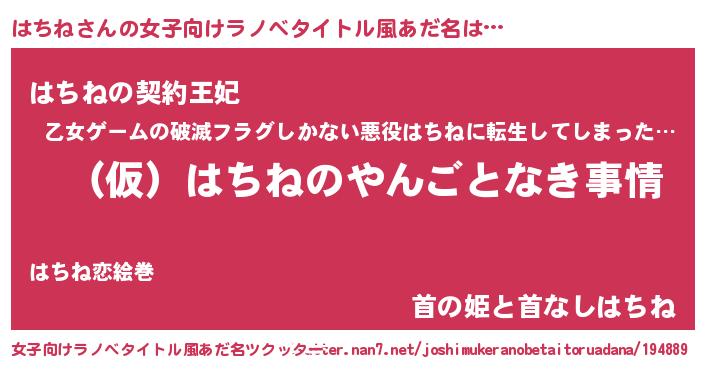 | 胡散臭い通販商品みたいなあだ名 | 『必ず成功する水晶球…その名も「はちね」』 |