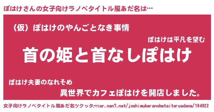 | 男性向けラノベタイトル風あだ名 | 『はたらくぽはけさま!』『ぽはけの憂鬱』 |
