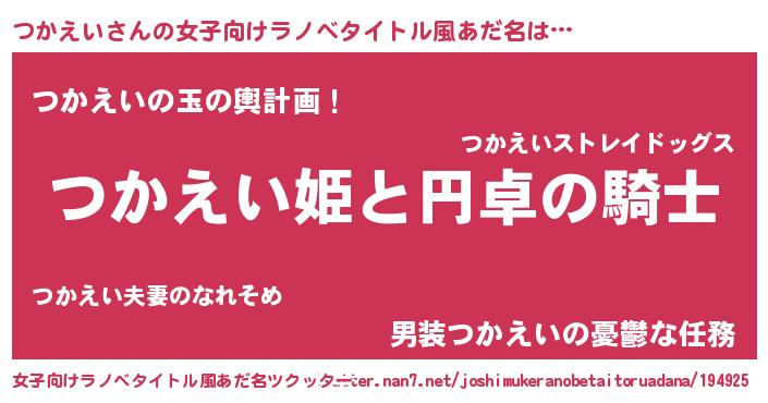 | 男性向けラノベタイトル風あだ名 | 『ツカエイアートオンライン』 |