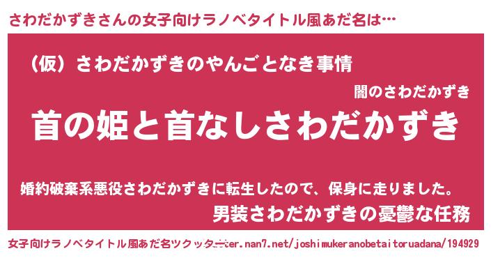 | 男性向けラノベタイトル風あだ名 | 『はたらくさわだかずきさま!』 |