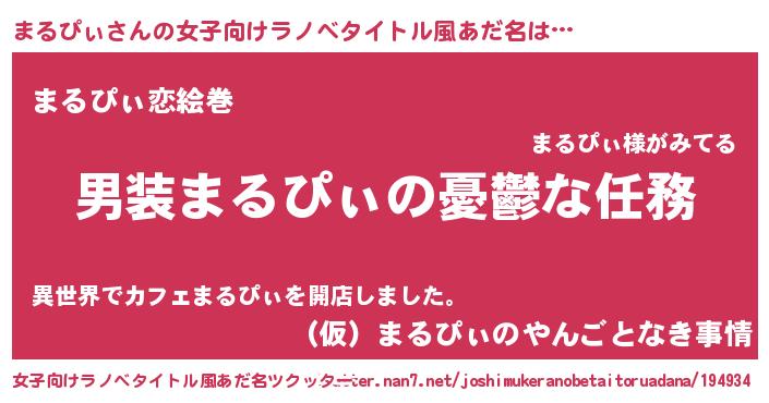 | 男性向けラノベタイトル風あだ名 | 『うちのまるぴぃが世界を掌握している!』 |
