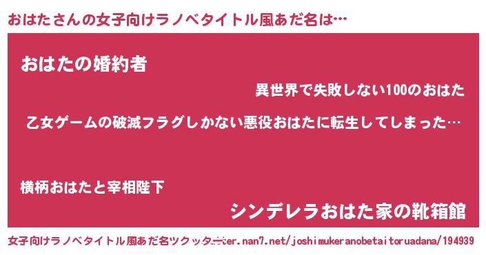 | 胡散臭い通販商品みたいなあだ名 | 『世界中を虜にした100年もののヴィンテージワイン…その名も「おはた」』 |