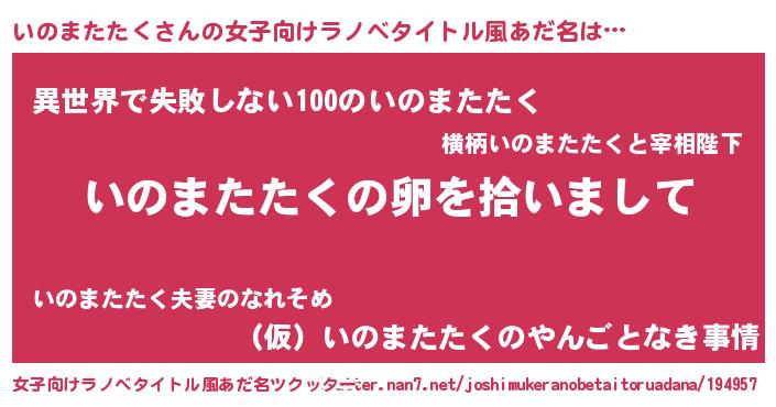 | 男性向けラノベタイトル風あだ名 | 『いのまたたくの嫁は女の子じゃないと思った?』 |