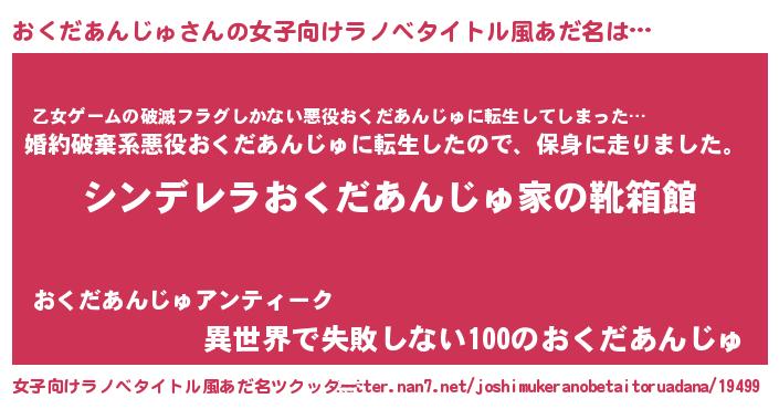 | 意味不明あだ名 | 『住所不定無職おくだあんじゅ(56歳)』 |
