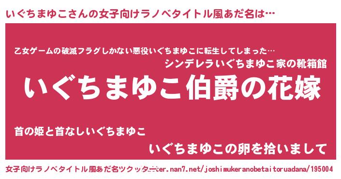 | 男性向けラノベタイトル風あだ名 | 『やはりいぐちまゆこの青春ラブコメはまちがっている 』 |