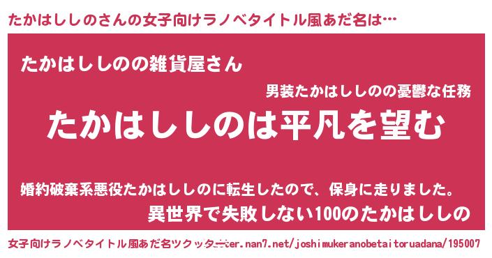 | 胡散臭い通販商品みたいなあだ名 | 『信頼と実績のネックレス…その名も「たかはししの」』 |