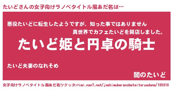 | 男性向けラノベタイトル風あだ名 | 『タイドアートオンライン』 |