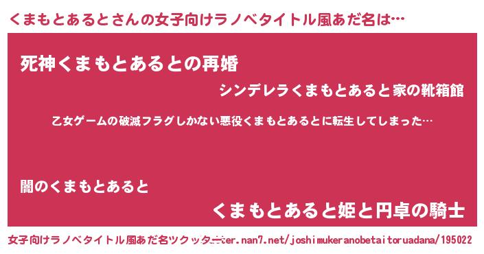 | 意味不明あだ名 | 『住所不定無職くまもとあると(13歳)』 |