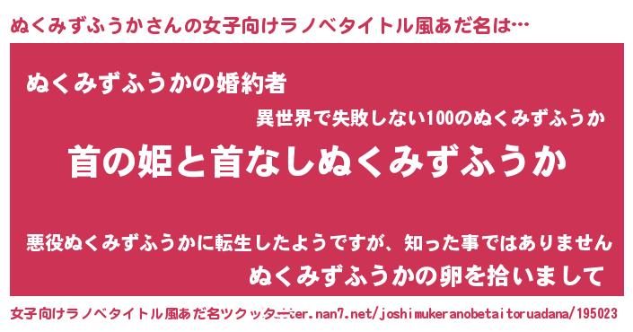 | ヒーロー風カッコイイあだ名 | 『ウルトラぬくみずふうかマン』 |