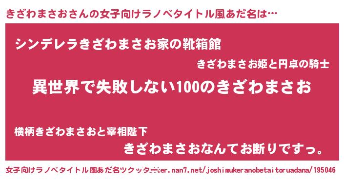 | 男性向けラノベタイトル風あだ名 | 『きざわまさおという概念が存在しない退屈な世界 』 |