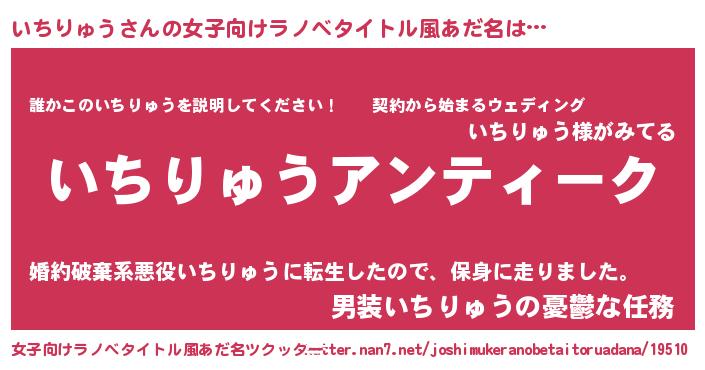 | 胡散臭い通販商品みたいなあだ名 | 『テレビで話題のアガリクス…その名も「いちりゅう」』 |