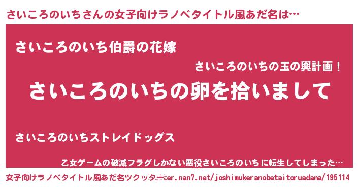 | 男性向けラノベタイトル風あだ名 | 『ダンジョンにさいころのいちを求めるのは間違っているだろうか』 |
