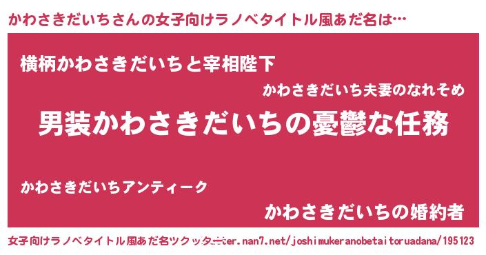 | 胡散臭い通販商品みたいなあだ名 | 『世界が平和になる高級そうな絵画…その名も「かわさきだいち」』 |