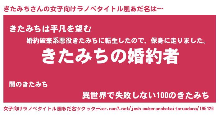 | ヒーロー風カッコイイあだ名 | 『ウルトラきたみちマン』『暗黒騎士キタ』 |