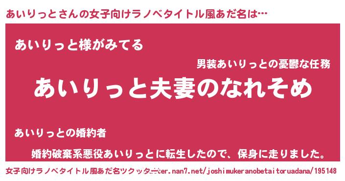 | ヒーロー風カッコイイあだ名 | 『正義の使者あいりっと』『魔戒騎士アイ』 |
