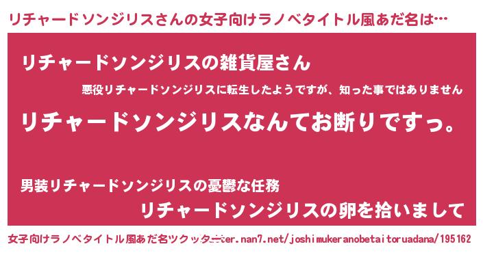 | 男性向けラノベタイトル風あだ名 | 『魔法科高校のリチャードソンジリス』 |