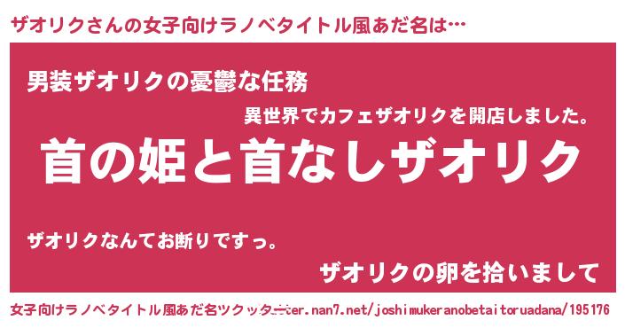 | 男性向けラノベタイトル風あだ名 | 『はたらくザオリクさま!』 |