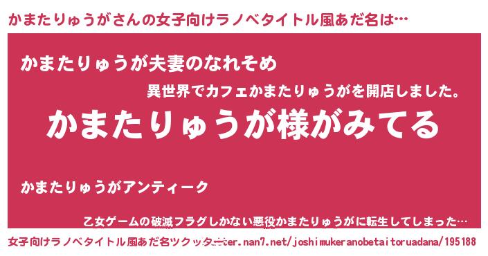| ヘコむあだ名 | 『かまぷりん』『かまたりゅうが(笑)』 |