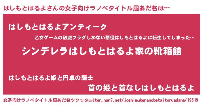 | 男性向けラノベタイトル風あだ名 | 『緋弾のハシモトハルヨ』 |