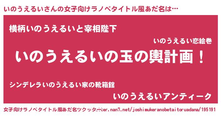 | 胡散臭い通販商品みたいなあだ名 | 『芸能人もオススメする高麗人参…その名も「いのうえるい」』 |